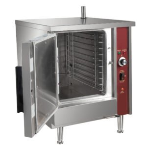 The Cleveland 21-CET-16 SteamCraft® Ultra 5 convection steamer has a two-piece compartment door design, enabling the exterior of the door to remain cool to the touch. Its free-floating inner door’s reversible gasket provides an airtight seal, and the stainless steel slam and latch door mechanism keeps the unit secure. This steamer has 4-inch adjustable legs…