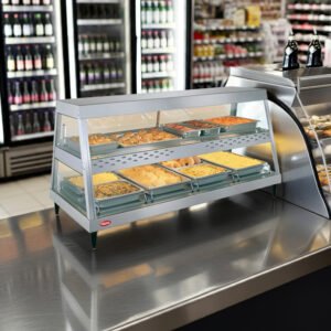 This black MoTak HDC48 self-service countertop heated display case is made of durable stainless steel and features a double-wall design for insulation. So customers can see into the unit, it’s surrounded by glass on all sides. The case is 47 1⁄4 inches wide by 20 3⁄8 inches deep by 31 3⁄4 inches high—designed to maximize…
