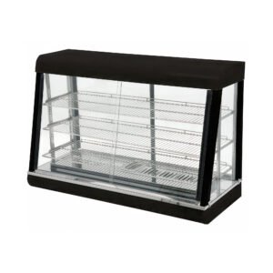 This Vollrath HRM-48 heated display case is a countertop unit designed to merchandize premade cafe and deli food products while keeping them warm and fresh for customers. The unit is black and features glass panels on all sides; the front and back glass panels are sliding doors for access by kitchen staff and by customers….