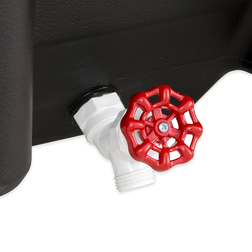 - Recessed, no-drip faucet and hose hookup make draining simple