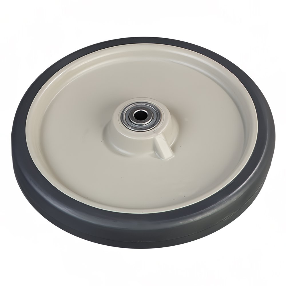 Measuring 10 inches in diameter, the Carlisle IC222WH00 wheel efficiently moves an ice caddy. With 1⁄2-inch flanged ball bearings, friction is reduced during turning for smooth transport. Its plastic material is durable enough to support heavy carts on a daily basis.