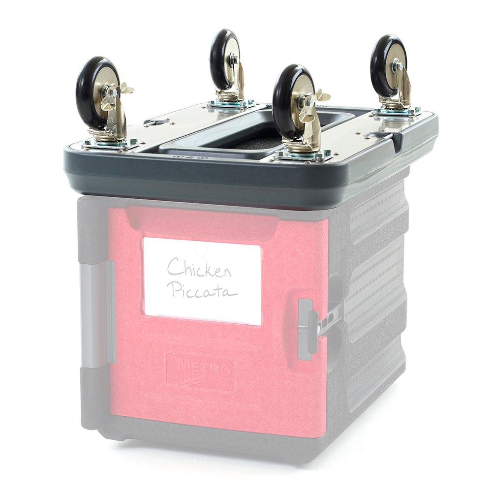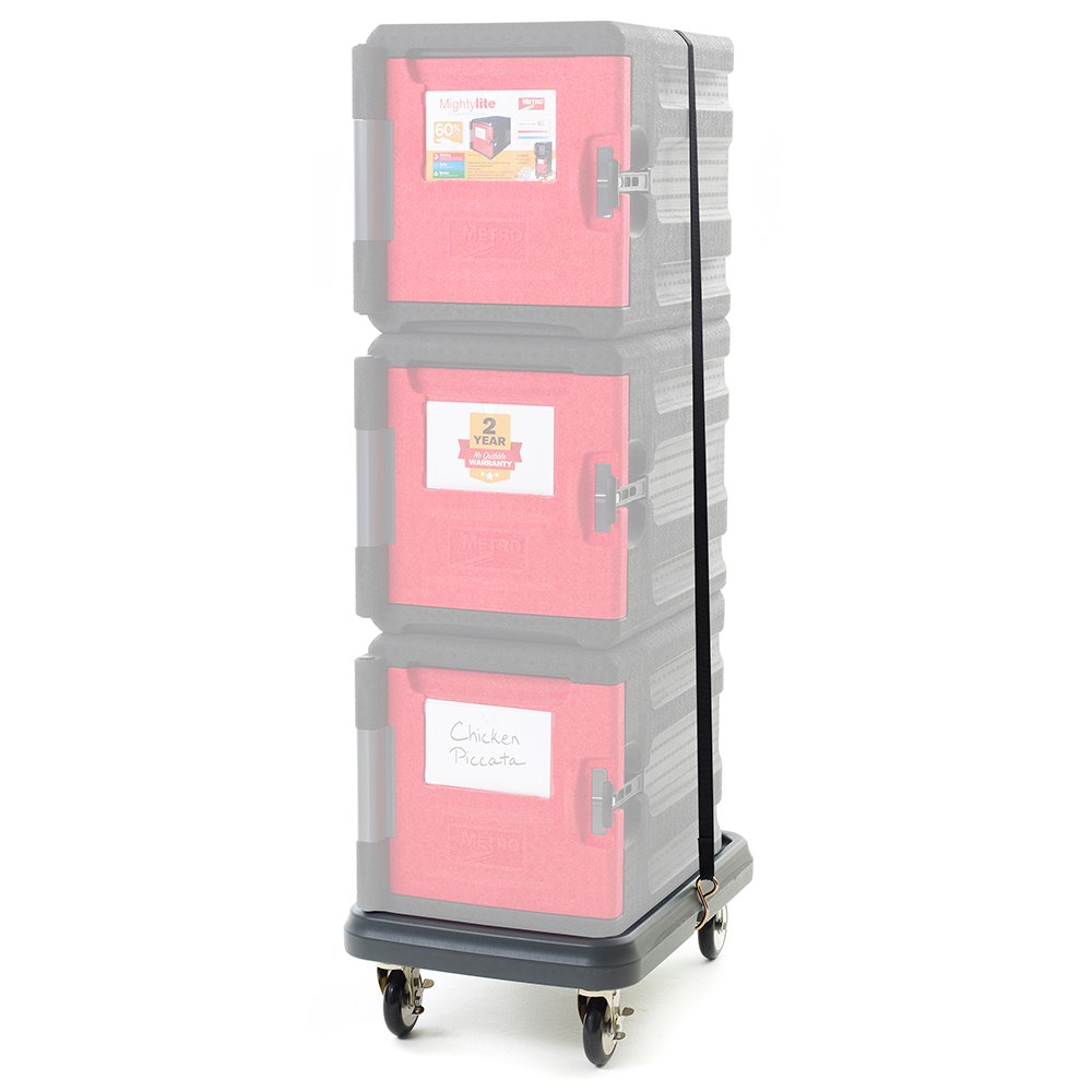 The Metro MLD1 dolly is designed to help users transport Mightylite™ pan carriers and standard milk crates. It can accommodate three ML300 carriers, two ML400 carriers, or two stacks of milk crates, with a total weight capacity of 350 pounds. Because it’s made of polyethylene, the dolly is durable and strong. Its 180-inch by 1-inch buckle strap hooks onto the dolly to secure carriers and crates for safe transport. The dolly’s four 5-inch swivel casters support mobility, while brakes on two casters can be used to secure it in place for loading and unloading.