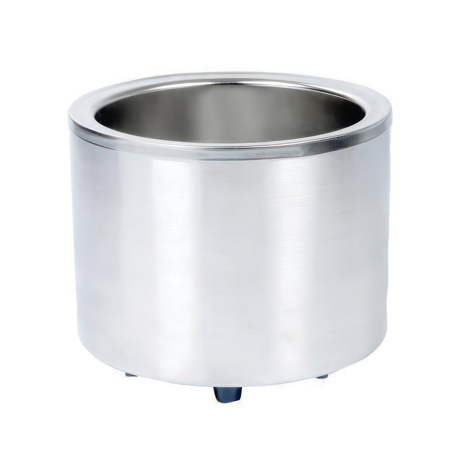 The MoTak FW11RS countertop soup warmer features a stainless steel construction with an 18/8-grade interior liner. The manual knob enables the operator to switch between the ten presets ranging from 0 to 212 degrees Fahrenheit, and overall, the unit measures 12 1⁄2 inches wide by 13 1⁄2 inches deep by 10 inches high. Using the included adapter ring, the capacity can be changed from 11 to 7 quarts, and it features nonslip feet to keep the unit steady as soup is dished out.