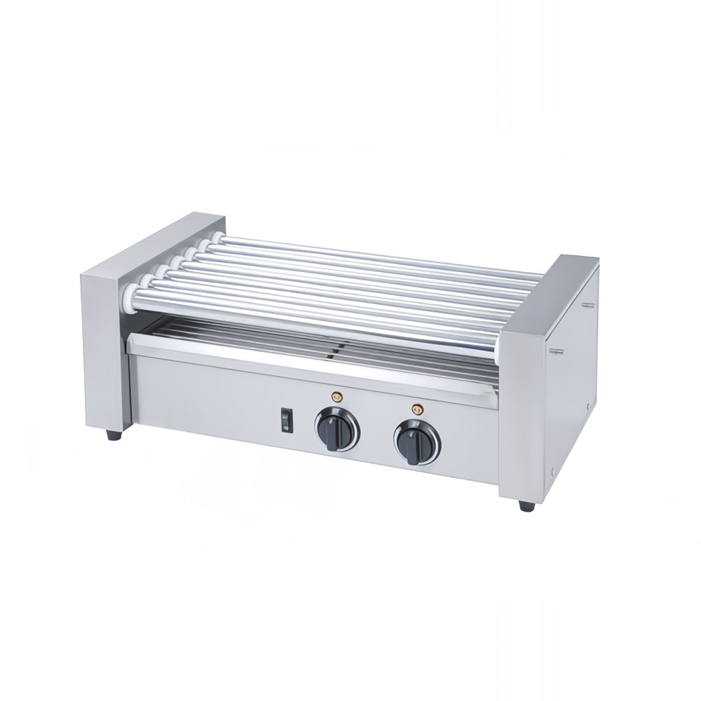 The MoTak HDRG2 hot dog roller grill has seven stainless steel rollers that can rotate a full 360 degrees for even cooking and heating. It’s equipped with a high-torque motor, which is durable and requires little maintenance. The grill can hold 18 hot dogs at once for serving multiple guests before it needs to be reloaded.