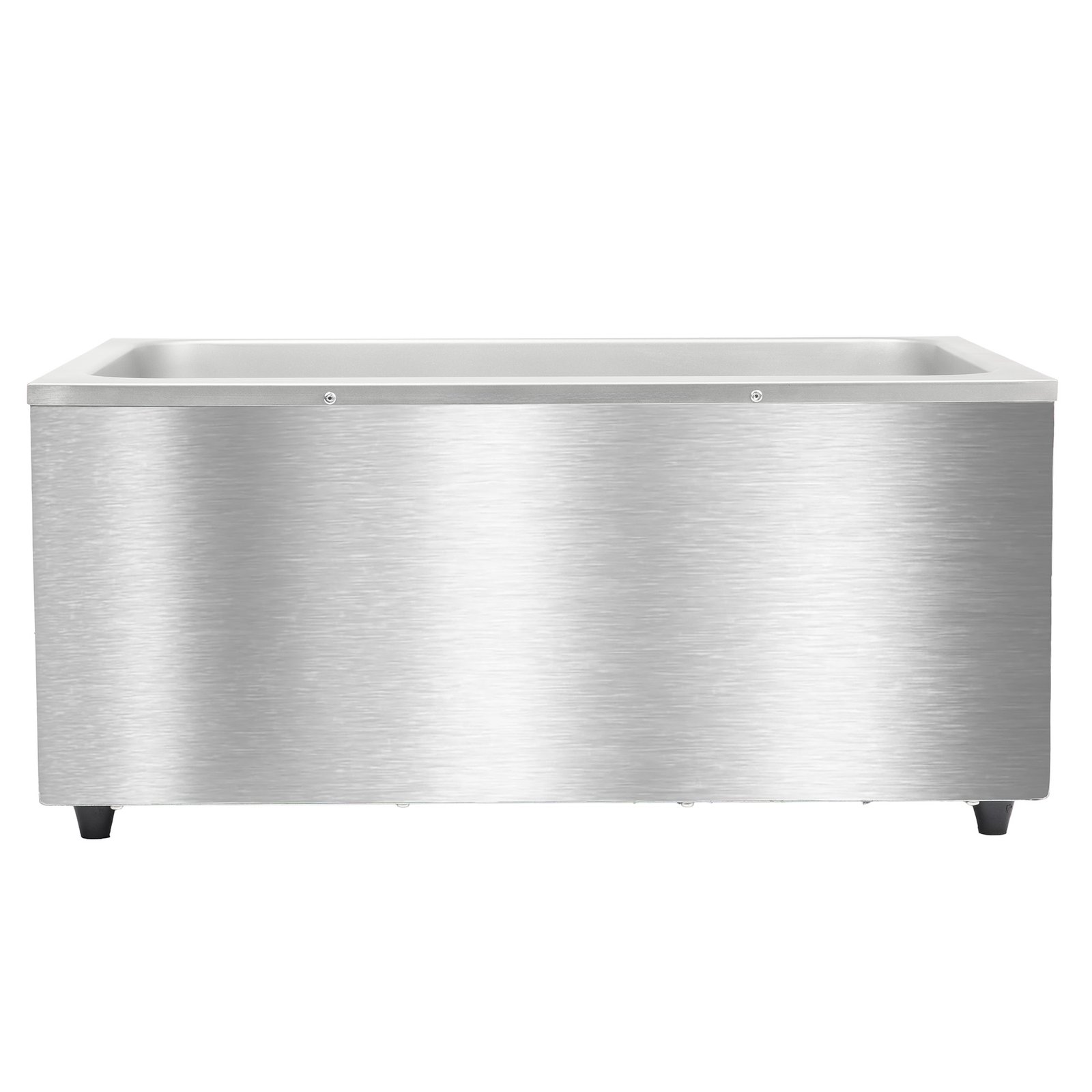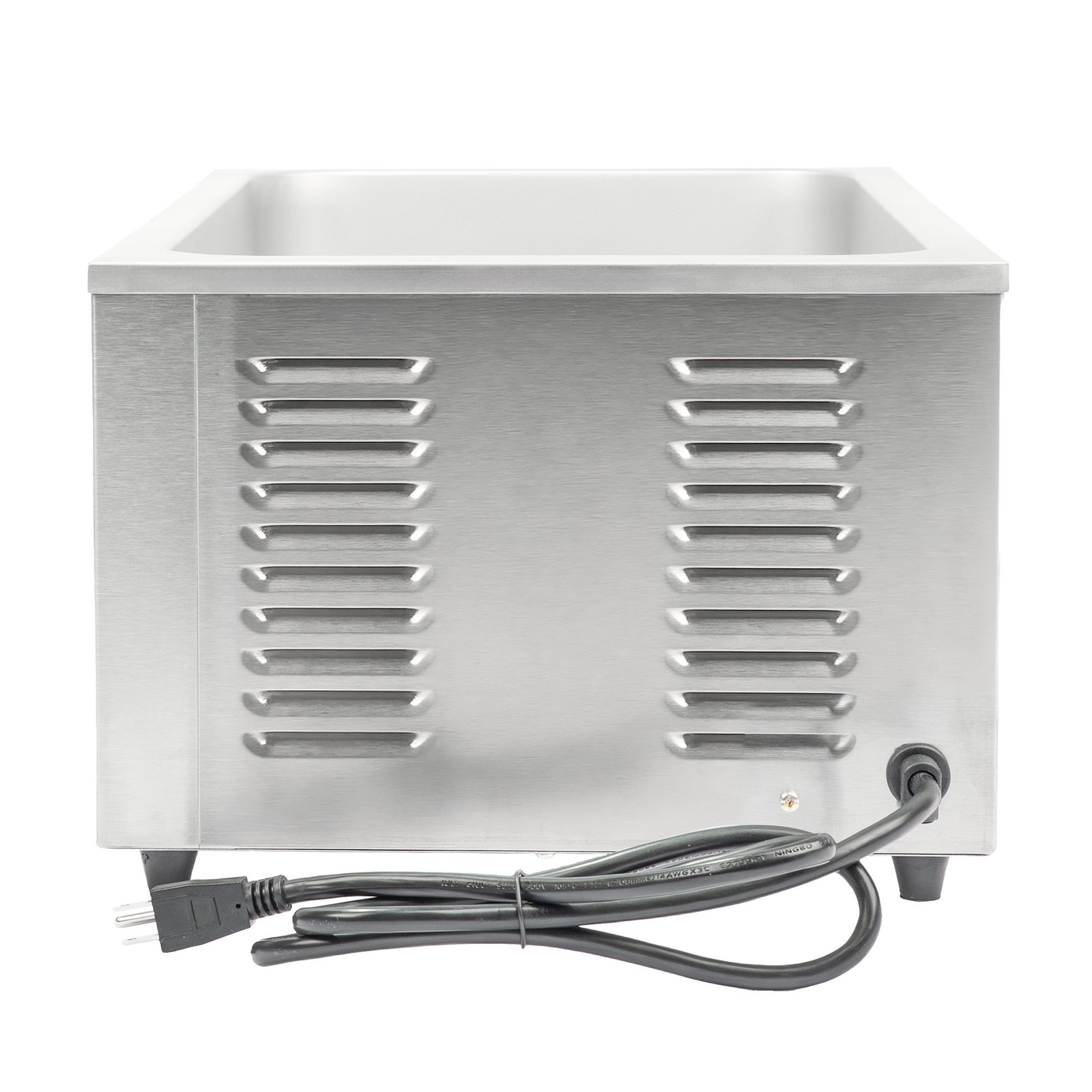 The MoTak MBM16 countertop food warmer’s stainless steel construction provides durability for everyday service. Its rectangular frame settles securely on narrow surfaces, helping kitchens keep workstations organized when space is limited. Measuring 13 9⁄10 inches wide by 24 1⁄5 inches deep by 10 inches high, this unit can hold a full-size pan up to 4 inches deep.